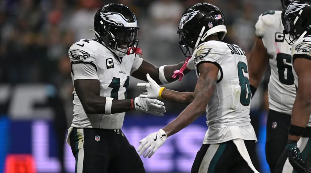 Sin embargo, los números generales decepcionan. El ataque rankea 30º en yardas totales por juego (251.5), 29º en yardas por acarreo (3.5) y 30º en yardas por jugada (4.2). Con Kevin Patullo como nuevo coordinador ofensivo, tras la salida de Kellen Moore, el esquema luce predecible. El juego aéreo, con solo 138 yardas por partido, no despega. A.J. Brown, con apenas 15 recepciones, ha mostrado frustración, aunque evitó controversias públicas tras un críptico mensaje en redes.