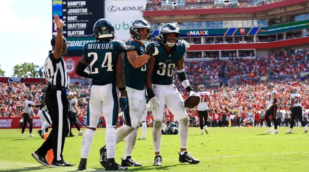 Esa noche Hurts corrió para dos touchdowns, Saquon Barkley añadió uno por tierra, y un fumble forzado por Campbell selló la victoria. La Semana 2, en Arrowhead contra los Chiefs, fue un déjà vu del Super Bowl LIX. Una intercepción de Andrew Mukuba a Patrick Mahomes casi que cerró el resultado, y Barkley, con 88 yardas terrestres, controló el reloj para un 20-17.