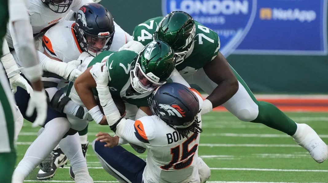 El Tottenham Hotspur Stadium de Londres fue testigo de una de las actuaciones ofensivas más desastrosas en la historia reciente de la NFL. Los New York Jets cayeron 13-11 ante los Denver Broncos en un encuentro que quedará marcado por un dato estadístico vergonzoso: el equipo neoyorquino terminó el partido con -10 yardas netas por pase, convirtiéndose en el primer equipo en registrar números negativos en esa categoría desde 2009.